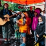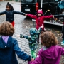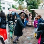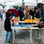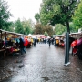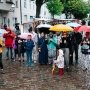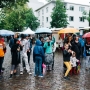 14 Uhr – es regnet. Die ersten Kommentare von den Standmietern kommen zugeflogen: "Lasst uns nicht abbrechen, das Nachbarschaftsfest soll stattfinden!", "Kriegen wir hin, lasst uns dennoch Spaß haben!". Das klingt glasklar nach unserer eigenen Einstellung, guten Laune und wir fühlen uns bestärkt: Wir machen jetzt das Beste aus der unverhofften Heirat zwischen Regen und Straßenfest.